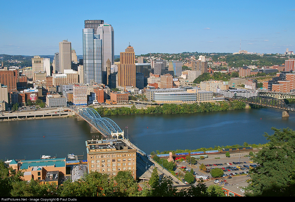 Q136 heads east through downtown Pittsburgh on an absolute beautiful late summer evening. Station Square is on the bottom left, which now features 65 stores, restaurants, and entertainment venues which have all been adapted from five historic Pittsburgh and Lake Erie Railroad buildings. If you look closely, you can see "P&LE RR" on top on the tan building.