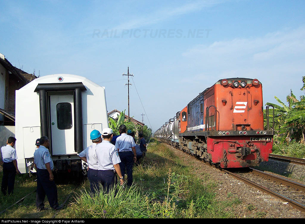 KA 1401, hauled by locomotive CC 20141 with the oil tank wagon, from Madiun go to Rewulu, Yogyakarta. And in the left, a passenger coach has derailed in track from Pengok workshop.