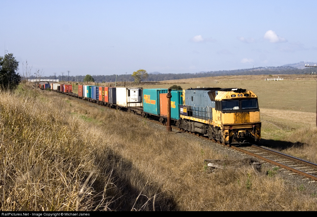 | It is not so common to see a single NR Class Locomotive lead a Pacific National Intermodal. On a clear morning in Kagaru, NR 12 breaks the silence as she rumbles through almost at the end of her journey at Acacia Ridge. |