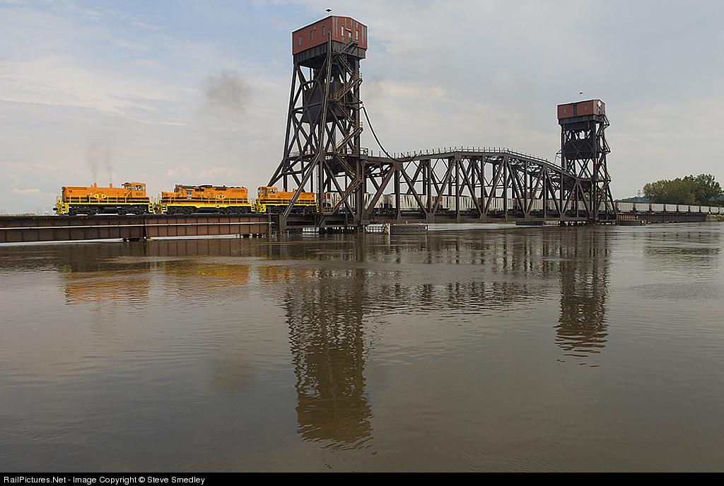 | With the Illinois River well above flood stage, Tazewell & Peoria Railway drags a Cedar Rapids coal loads bound for the Iowa Interstate, on Sunday afternoon Sept 21 2008. |