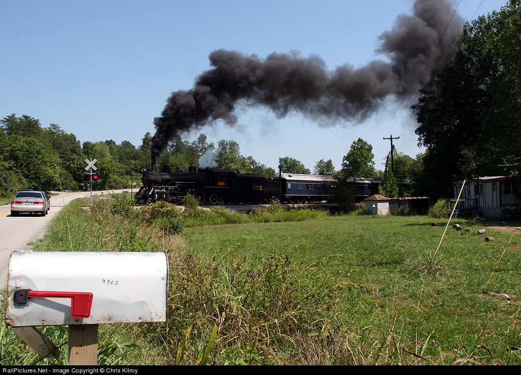 | You know you've hit the jackpot in life when you not only have a double wide that looks like it's about to fall down, but you also have a mailbox with the street address written in magic marker! The Kentucky Railway Museum's pride and joy steams northward through this typical rural Kentucky scene on a glorious summer afternoon in September, 2007. |