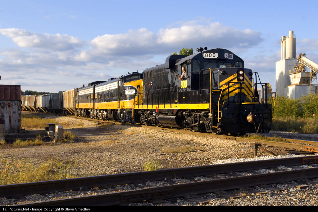 Peoria & Western Railway engineer Doug Henry leans from the cab of PREX 800, a GP8 that is on its first run helping the two FP9A's that have made this central Illinois railway a prime target for railfans looking to record covered wagons. With traffic up, the two F's have had problems stalling on hills, so the 800 has been sent over from Keokuk Junction to help keep the trains moving. The 800 is at Bridge Junction in Peoria, on its way into the former Peoria & Pekin Union Railway's yards across the Illinois River in Creve Couer. The Tazewell & Peoria Railroad will send the Peoria & Western back home with a long train of interchange traffic this Tuesday night, Sept 30, 2008.