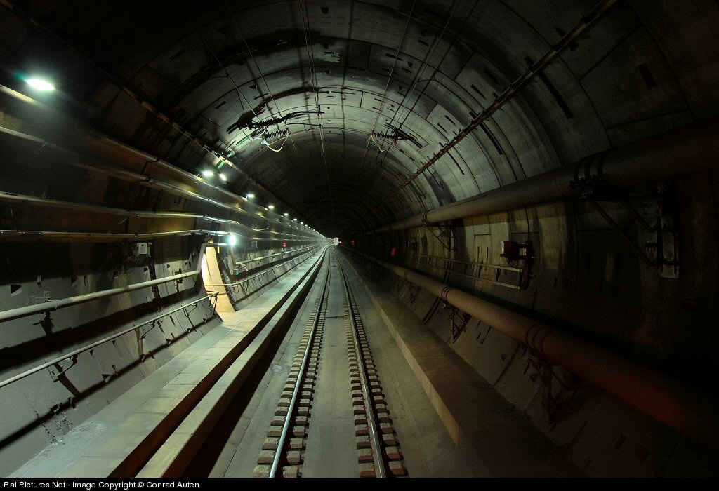In Running Tunnel South looking towards the French crossover. Catenary feeder wire earthed to protect maintenance works.
