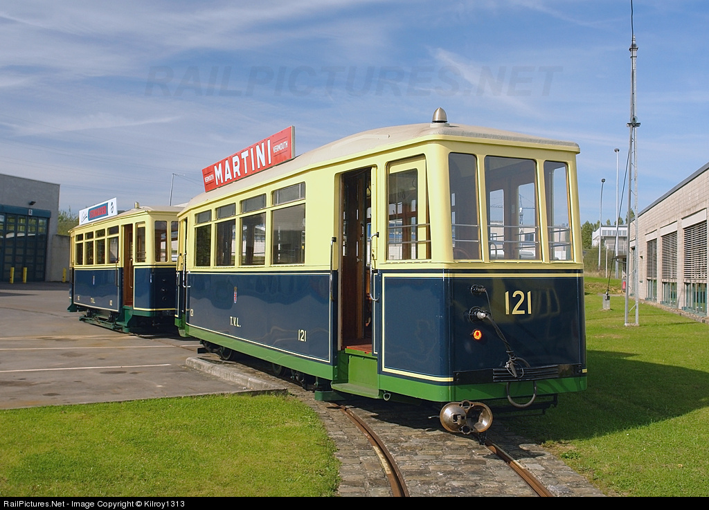 Tramway trailer #121car behind motor car #112 were towed outside the museum (as there is no overhead wire over this section of track) on occasion of the "Luxembourg Classic Transport Day 2008".