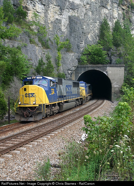 CSX Q541 rolls southbound out of the double track tunnel at Mullins behind SD70MAC 733.
