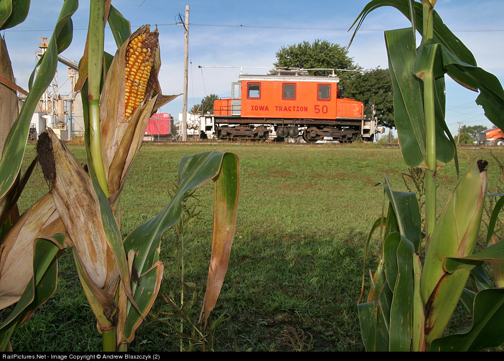 Where else but Iowa can you frame a traction locomotive with corn still on the stalk! IATR 50 sits at the plant waiting for its call to duty when needed.