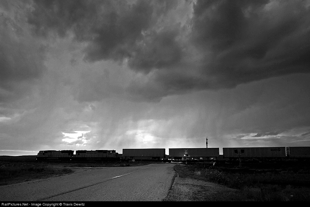 This train wasn't stopping for this storm as it thunders West into Cheyenne, WY.