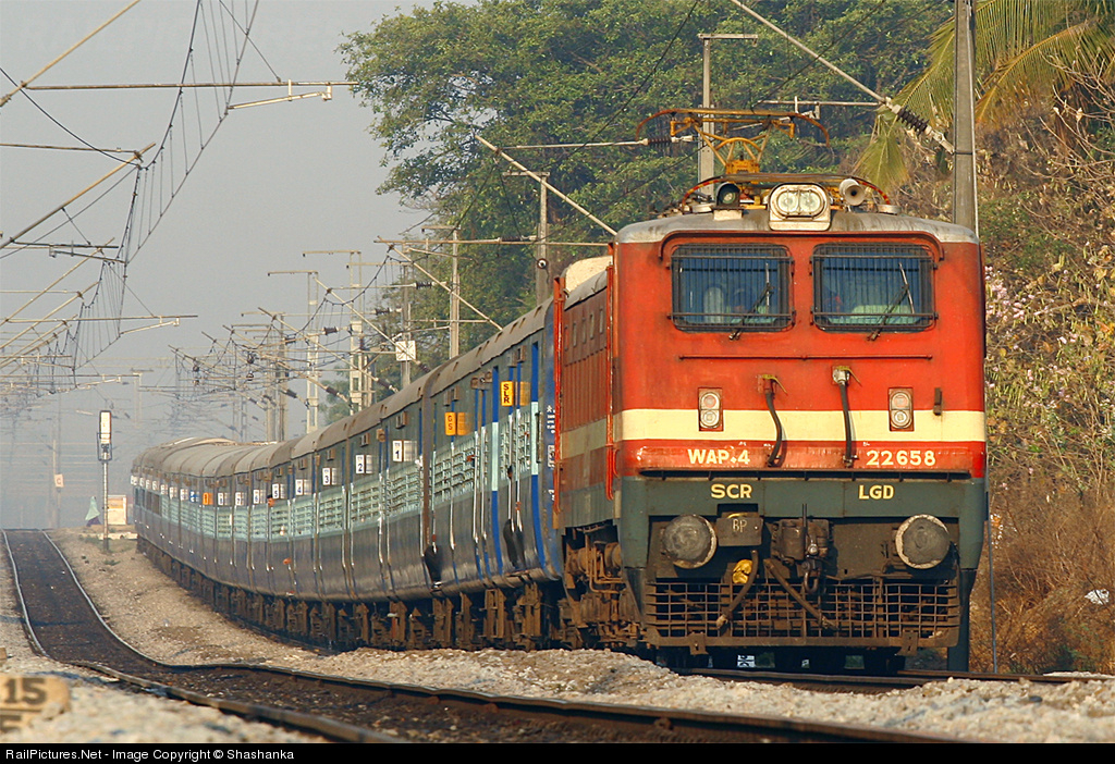 RailPictures.Net Photo: 22658 Indian Railways WAP4 at Ghatkesar, Andhra Pradesh, India by Shashanka