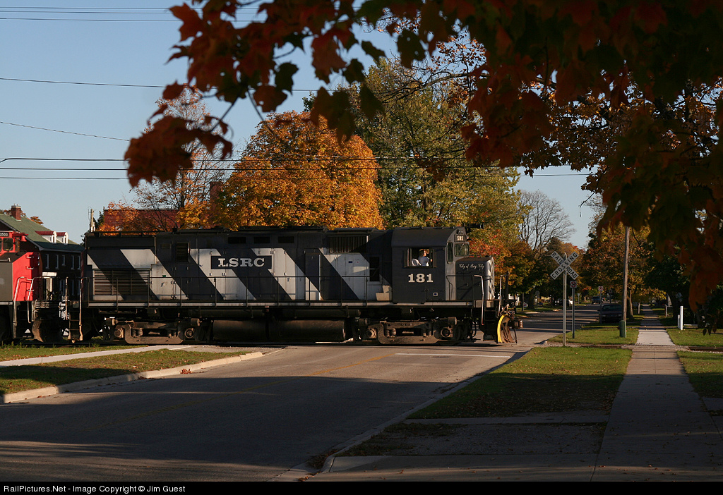 | LSRC train 326 departs Alpena with a classic Alco in the lead. This is one of the few spots in the Alpena area that you can get fall color and trains in the same shot. For some reason all the best fall color is away from the rails. |