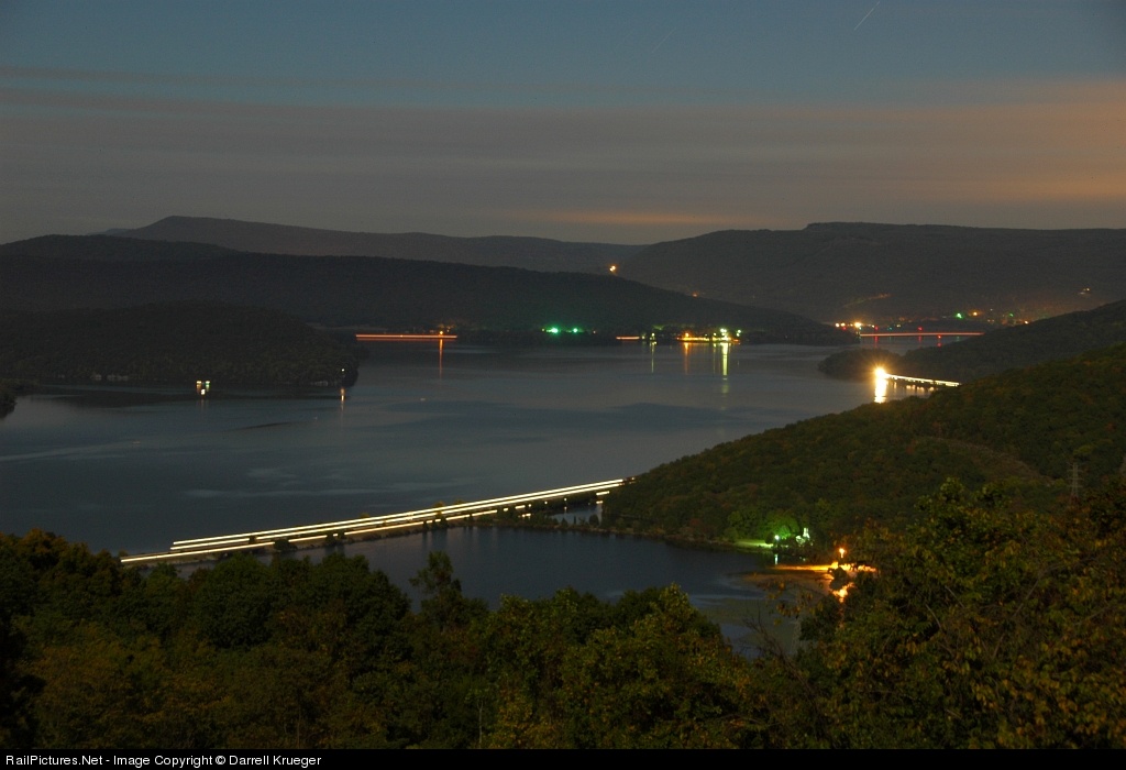 | Q200 wanders along the shoreline of Nickajack Lake with a tremendous sound under a full moon. The train is in Tennessee, and the image was shot from Alabama, and a little bit of the state of Georgia is in the shot too. |