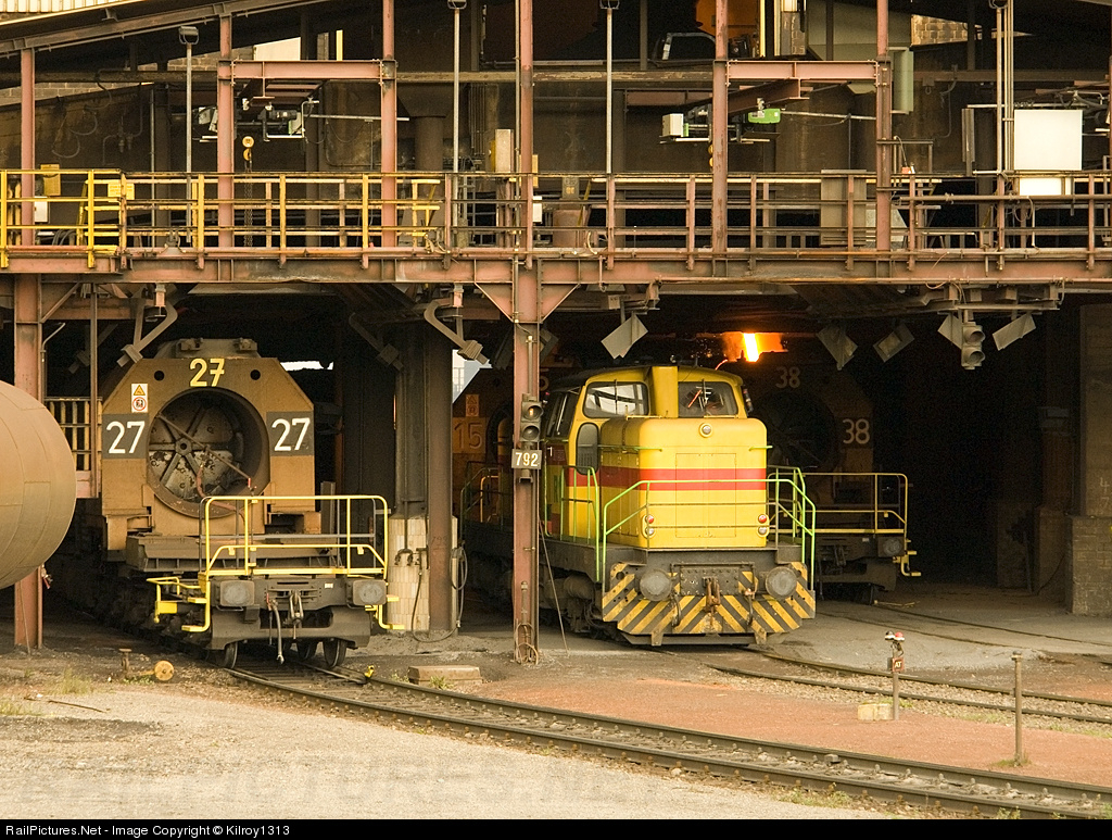 This diesel loco positions hot metal cars for filling with the liquid metal from the blast furnace.