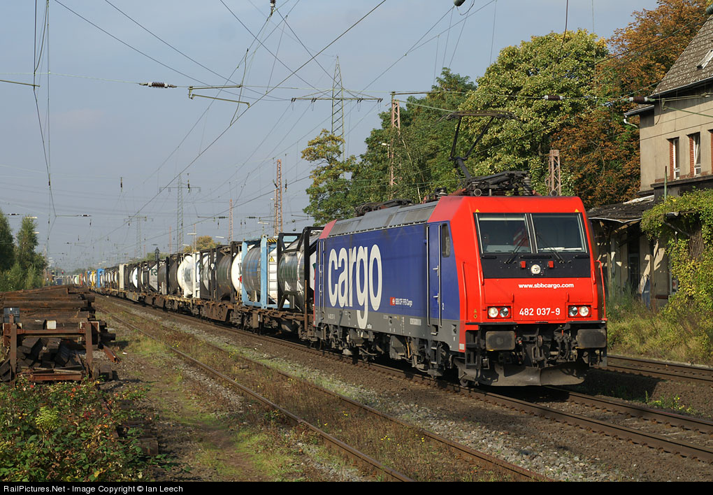 | SBB 482 037 heads a intermodal through Lintorf,just south of Duisberg,back to Switzerland. |