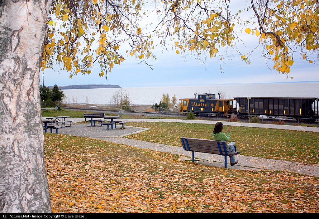| On a quiet Sunday afternoon one of Anchorage's lovely local residents performs a time honored American tradition--waving at a passing caboose.....for the last time. This inbound empty gravel train is arriving in Anchorage from AS&G and is seen passing this quiet little downtown park just a couple hundred yards south of CP 1140 on the ARR's mainline. This is the final revenue gravel train of the 2008 season for this customer and the LAST one to ever feature an occupied manned caboose. This cab was the very last one on the ARR and quite possibly the last one in all of the land to still be in daily service on a mainline train fully equipped as god intended. All ARR cabooses are being retired (even those in MofW service) and this train will run in 2009 with a soulless "FRED" on the rear like every other homogoneous freight train. Truly the end of an era.... |