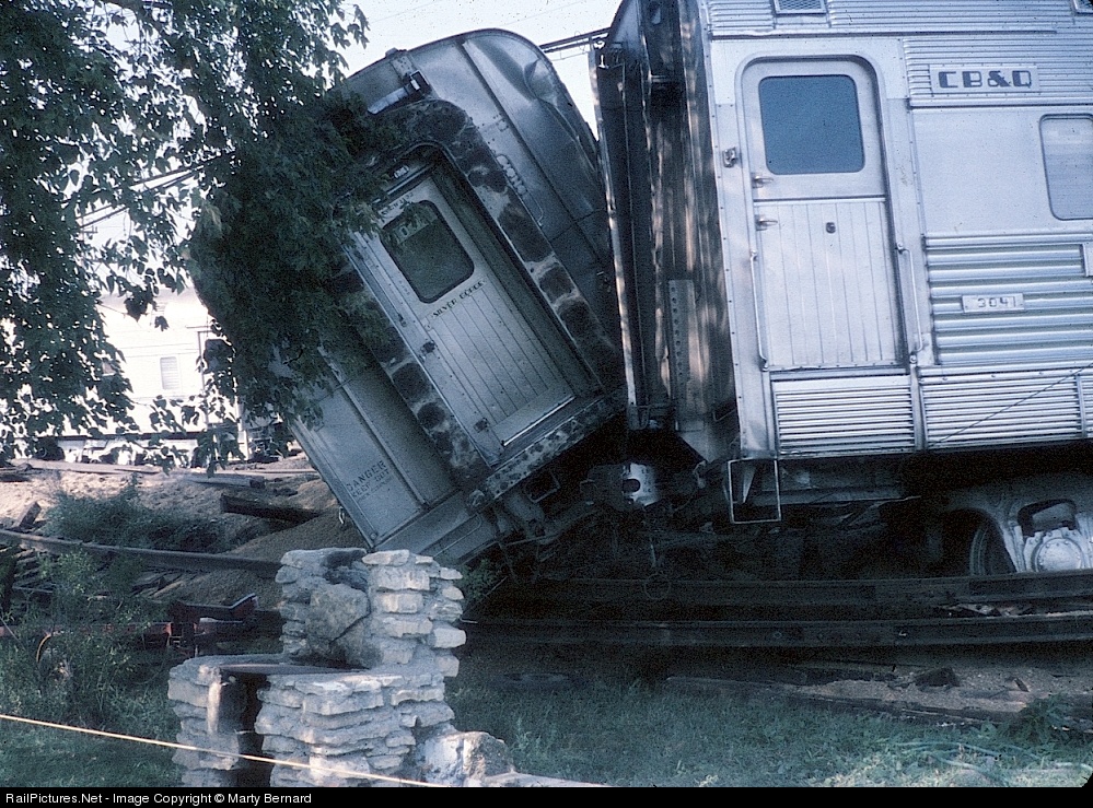 The car to the left is DRG&W Diner "Silver Gorge" the other is CB&Q Slumber Coach "Silver Crag". Both are California Zephyr cars. For details of this wreck see: http://railfan44.rrpicturearchives.net/archiveThumbs.aspx?id=23180