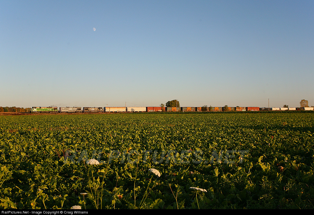 | The Durand Turn is on their way back to Bay City as they past thru some fields a few miles north of Saginaw. This turn is only about 8 miles from Bay City where they went to work at 9 am this morning. The Huron Eastern and the Central Michigan are now both owned by RailAmerica. |