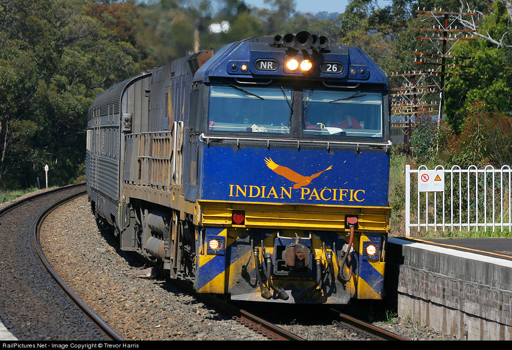 | The Indian Pacific Diverted via Main South Line makes its way towards Sydney Passing through Yerrinbool station lead by NR26,An Unlucky Kangaroo seems to have tried its luck against a train and came of 2nd best. |