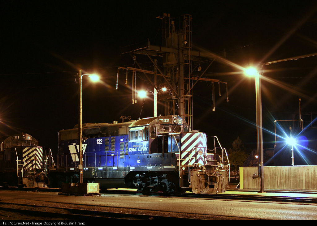 | Just after 2:00AM on a cool Fall night, Montana Rail Link GP9 132 sits at the ready at Missoula Yard. The geep will likely sit until Monday morning when its called upon to power locals to Polson, Darby and Schilling. In the last year some of MRLs GP9s have been sold or scrapped making some wonder whether scenes like this will be less common. (Note: This image was taken from a public street and the photographer was not trespassing) |