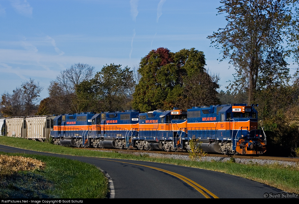 RailPictures.Net Photo: MMID 303 Maryland Midland EMD GP38-3 at Medford, Maryland by Scott Schultz
