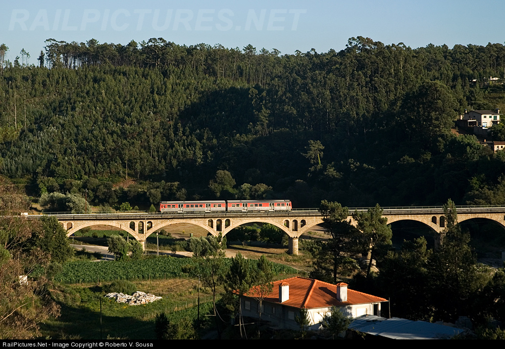 | CP 9630 with a regional train Aveiro to Sernada do Vouga, passing in Vouga river bridge, already near the final destination. |