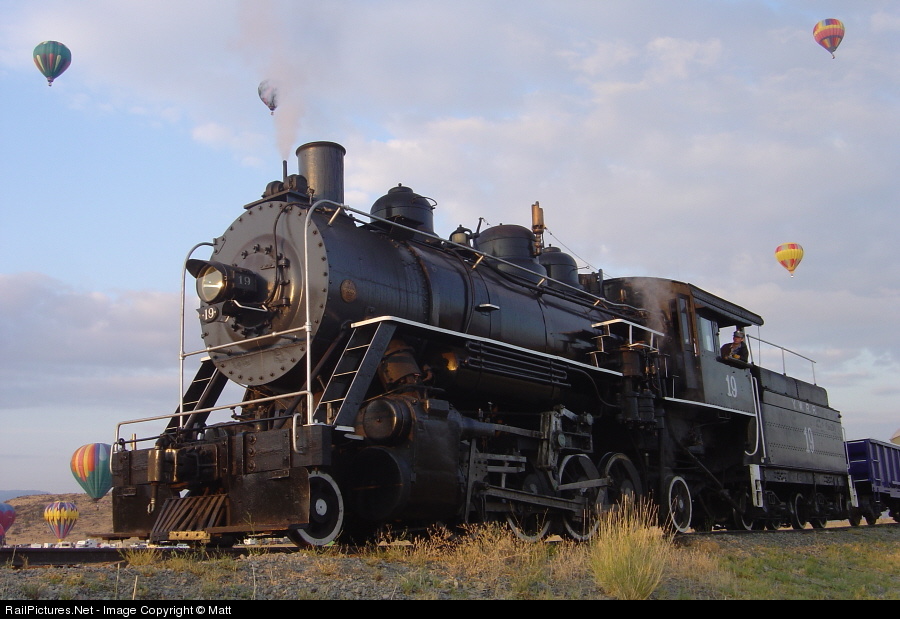 Yreka Western 19 at the Montague Balloon Fair. The train departed Yreka at 5:30am to get here by sunrise.