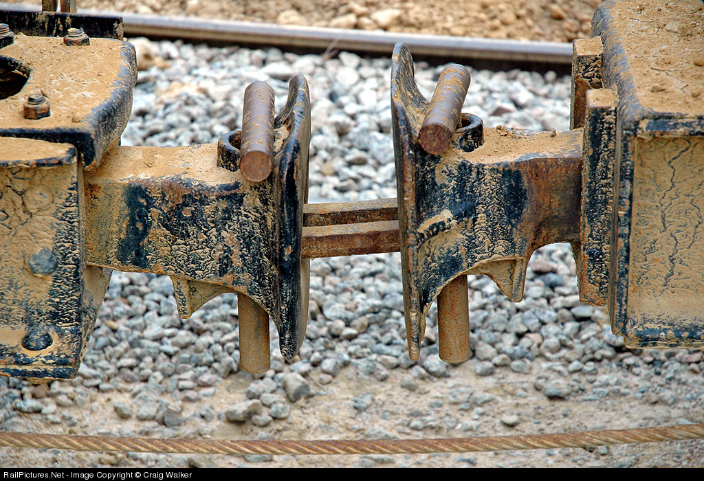 Link and pin couplers in 2008! Palmetto Brick's 3' gauge operation in Wallace, South Carolina, still features these "old school" couplers, even though the equipment is now roller bearing equipped. This line has since ceased operation, with trucks taking over the duties.