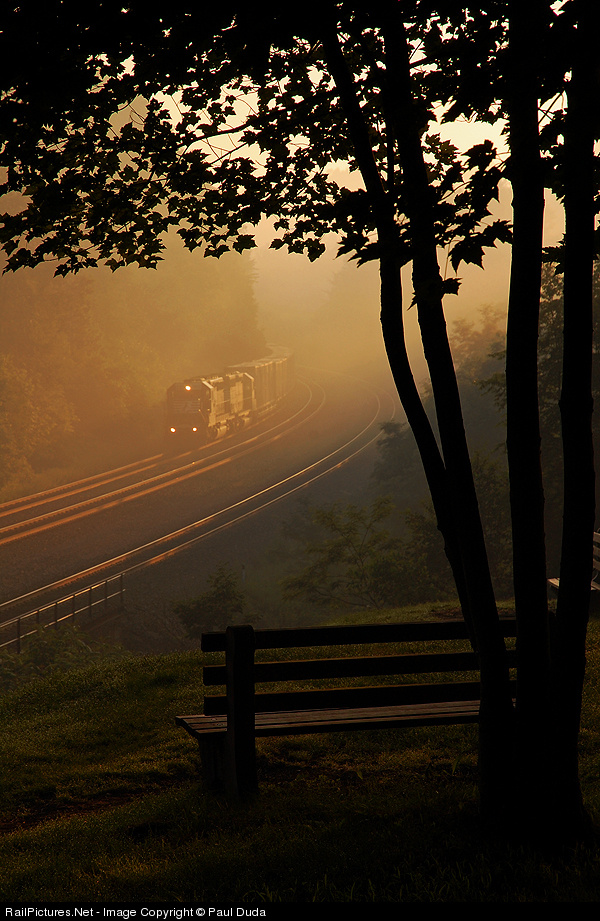 NS 65J cuts through the morning fog shortly after sunrise in the mountains of Central PA.