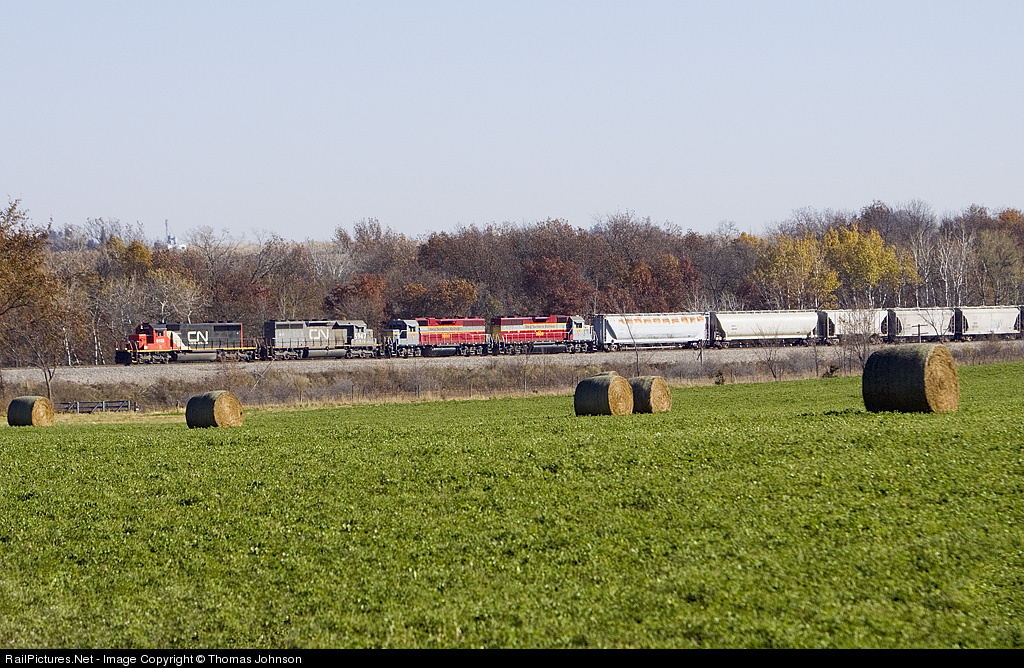 L563 is heading west back to Waterloo after departing Manchester. Two Iowa Northern GPs are in the consist: IANR 3803 & IANR 3800.