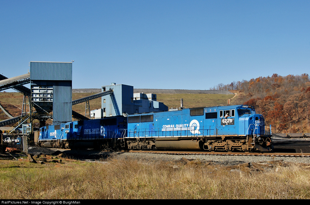 A trio of ex-Conrail SD60I's begin loading a PPLX coal train as they pass through the balloon track at Consol's Blacksville No. 2 Mine.