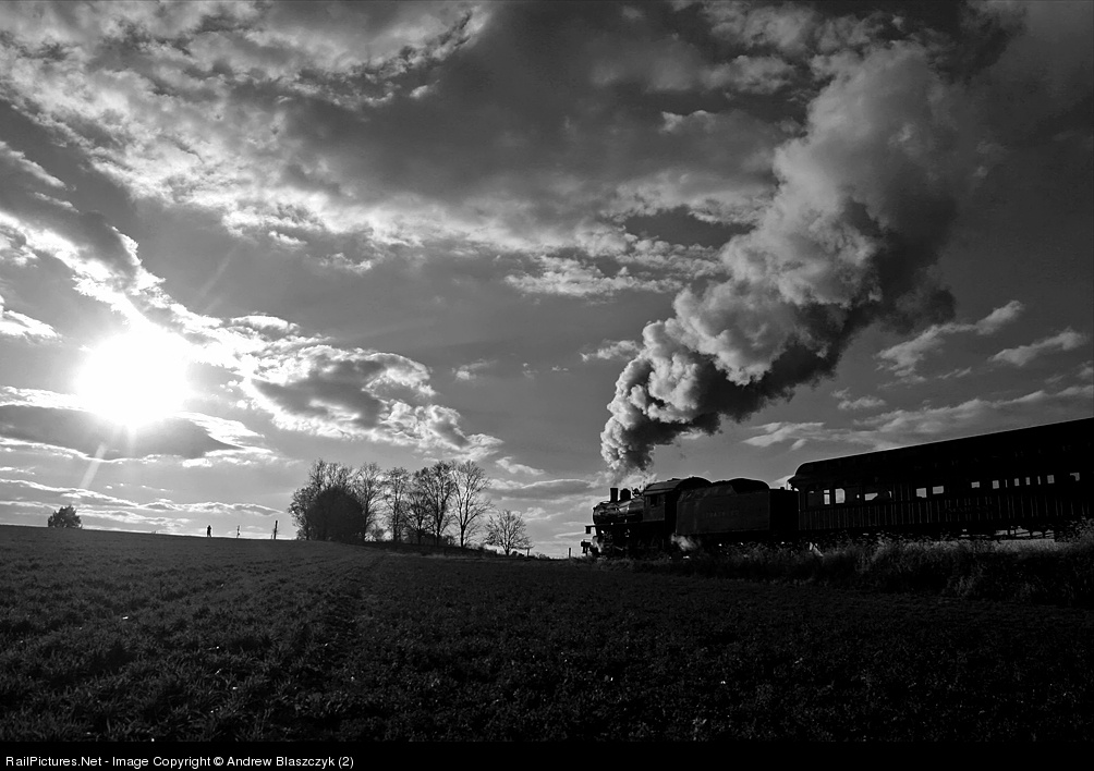 The sun still has a few hours left above the horizon, but this is the last 475 will see of it as she pulls the last train of the day west towards Strasburg.