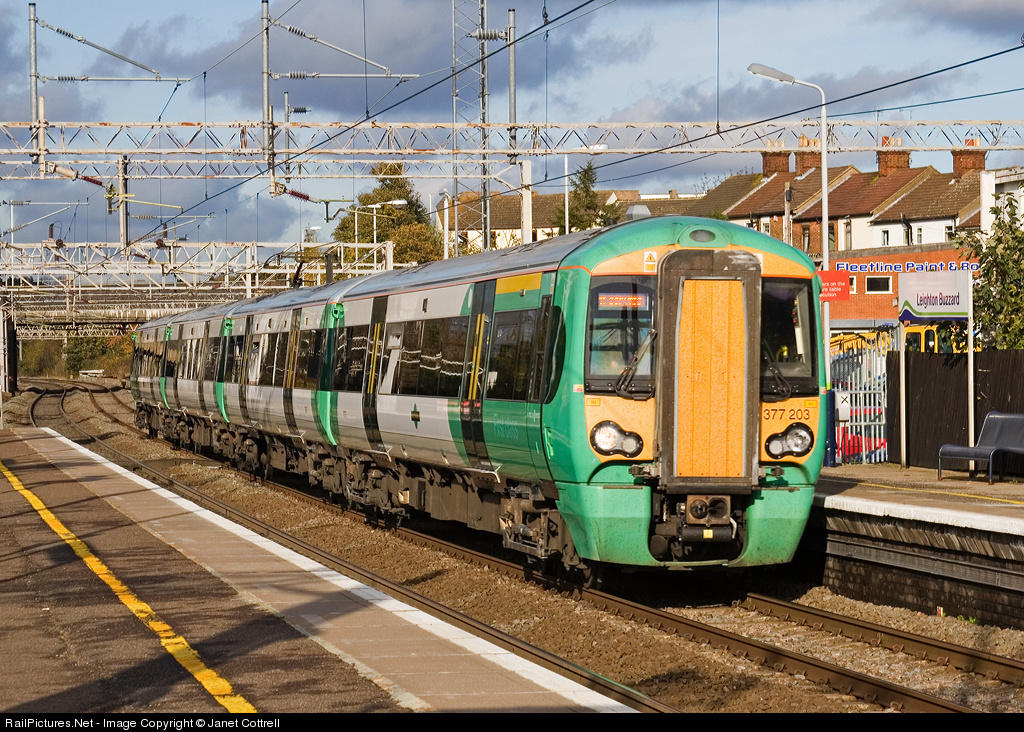 | A Southern Trains class 377 passes south through Leighton Buzzard on a crew training run in readiness for their new service to Milton Keynes Central starting in December 2008. |