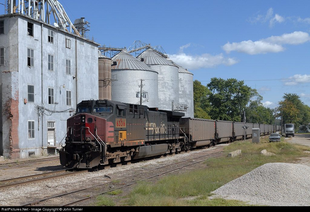 | Formerly SP 240, now patched UP6336 is the rear DPU on coal empties heading east on the Indiana Railroad. I preferred it as the SP 240 ! |