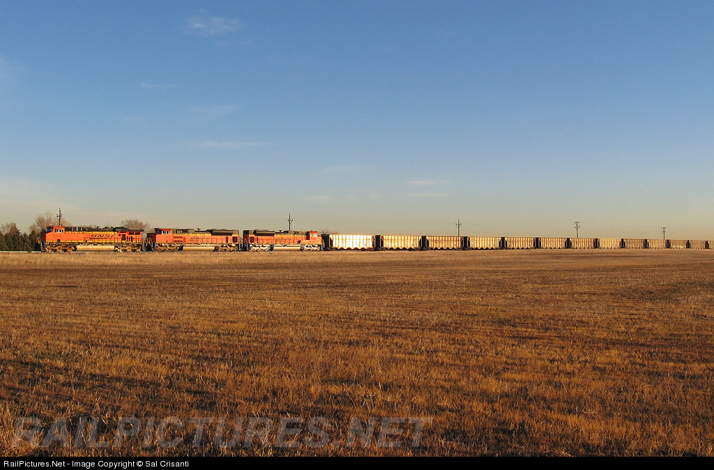 BNSF 6124, BNSF 9399, and BNSF 9236, and the Valmont Train are seen arriving at Longs Peak Siding, just before sunset. The crew will tie the train down and be picked up by Rezenburger and be taken to Cheyenne.