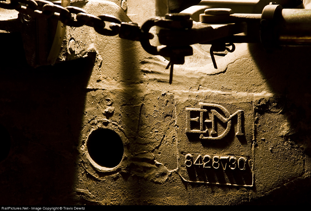 The front truck of this EMD SD40-2 are illuminated by the glow of a single light bulb on this cold night.