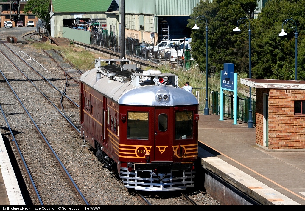 | Belonging to the Rail Motor Society at Paterson, inspection car HPC402 waits at Goulburn for the XPT to clear on an ARHS tour to Southern NSW. |
