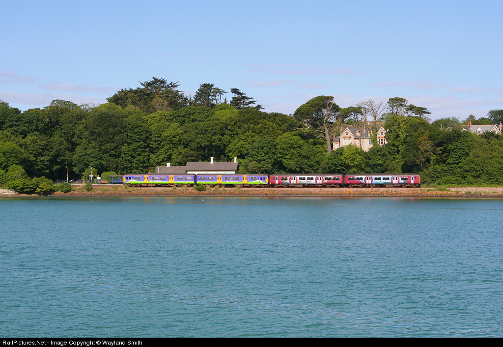 The high frequency St Ives - St Erth shuttle service, seen Lelant in Cornwall. The leading unit is in Silverlink livery, following its transfer out of the London area at the end of their franchise.