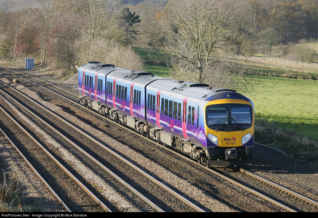Class 185 diesel unit 185104 is seen at New Barnetby on a Manchester Airport to Cleethorpes service.
