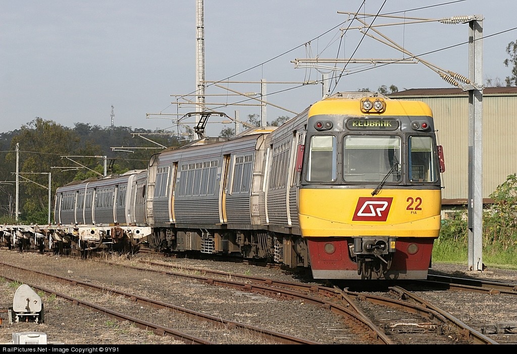 QRCITY TRAIN EMUs 22_80 sit in redbank yard and waits for the road to go into Redbank Station to work 1013 all stations Redbank to Bowen Hills service.