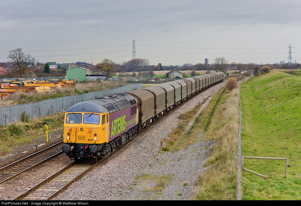| After 56311 had failed it was left to 56312 to manage the return trip of near 2000 tonees of steel from Immingham. It is seen as it accelerates away from Burton on Trent some 35 minutes late. The delay was due to signalling, not the loco |
