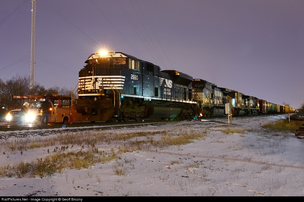 After sitting here all day, due to a CSX train breaking a knuckle trying to get up the hill on the Columbus Line Sub, and blocking 12V's route though CP 138, the conductor talks to a maintainer about the plan to move the power from the head end to the rear, and to pull the train back into Buckeye Yard.