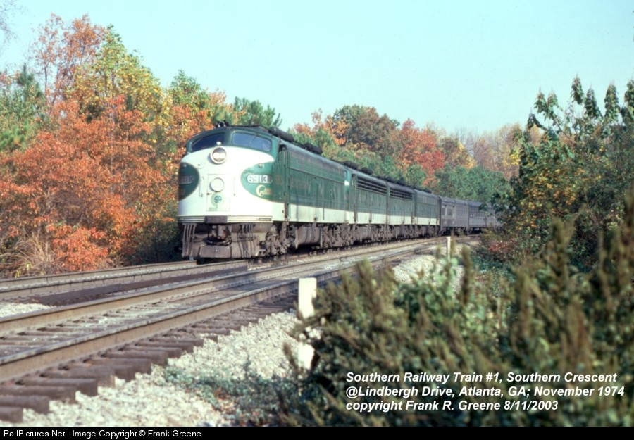 The Southbound Southern Crescent is about to cross Lindbergh Drive in NE Atlanta. It will be on the platform at Peachtree Station in less than 5 minutes.