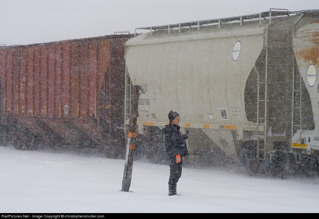 With the blizzard taking a breather and the snow taking a break, the conductor that brought the train to Cass Lake for a crew change does a roll by of the M-GFDSUP. Minutes after this, the wind would pick up and the snow would start to fly again. The wind chill was 40 degrees below zero with the actual air temperature around eight below and falling. At times visibility was reduced to a few feet as the area received over a foot and a half of snow. As a child, and even as a railfan, I remember watching these men working on the railroad wanting their job so bad, but watching them in the most brutal weather mother nature could throw their way... it is days like this that reminds me I'd rather be shooting them and running back to a warm vehicle rather than having to spend a shift in this. This is a tough job, I'll take my current job of managing emergencies over this though.