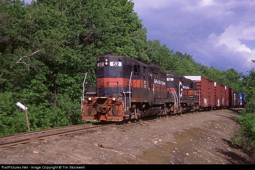 | ST MD-1 works its way north, just south of Madison, ME. Not surprisingly based on this visual, track speed on this branch is 5mph. |