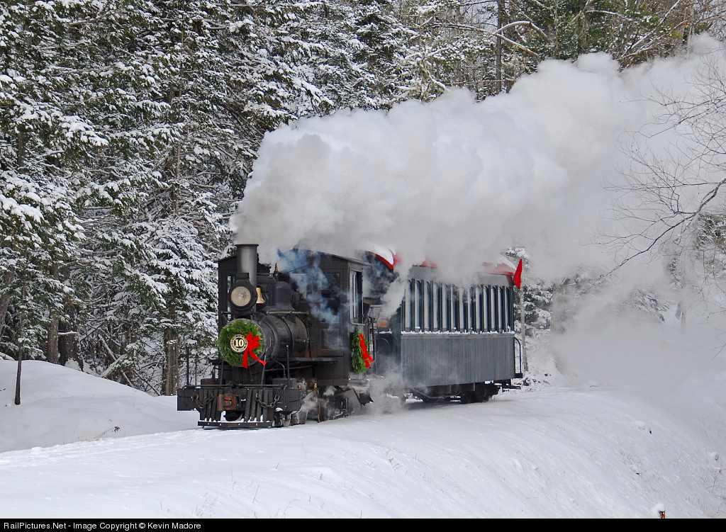 Merry Christmas from snowy Alna, Maine! Each year, on the Saturday before Christmas, the Wiscasset, Waterville and Farmington Railway Museum hosts an event called "Victorian Christmas" to thank its patrons and the community for their support. They provide hot drinks, snacks and free train rides. Those hot drinks were very popular this year as the fresh snowfall and single-digit temperatures made conditions a tad brisk. Here, #10 comes off Cockeye Curve and heads for Sutter's Crossing with the second trip of the day.