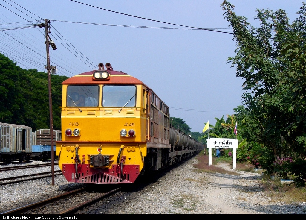 This is a shot of SRT loco 4146 taken as it was passing though Paknam Pho with a load of Crude oil tanks. This Alstrom loco is in very good condition it appears it’s been overhauled and repainted recently.