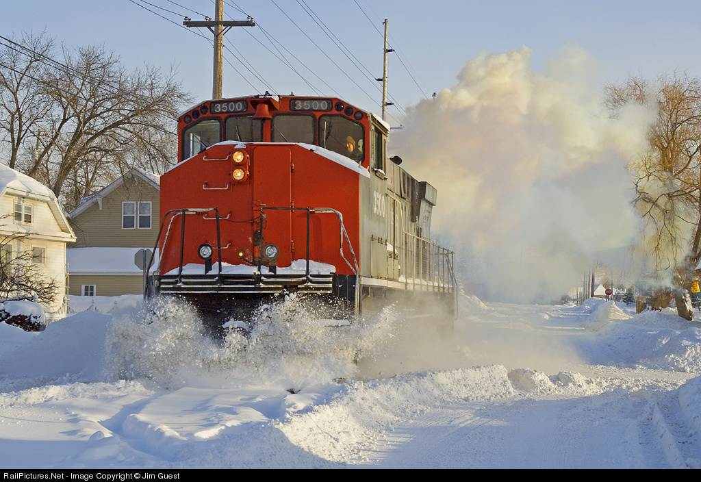 Go MLW! GO! With the plow in the middle of the state, the Lake State ran a lone unit a short ways through town to clear the way, seen here blasting through a snowbank and smoking it up. Alpena has had almost 50 inches of snow this year, twice the norm.