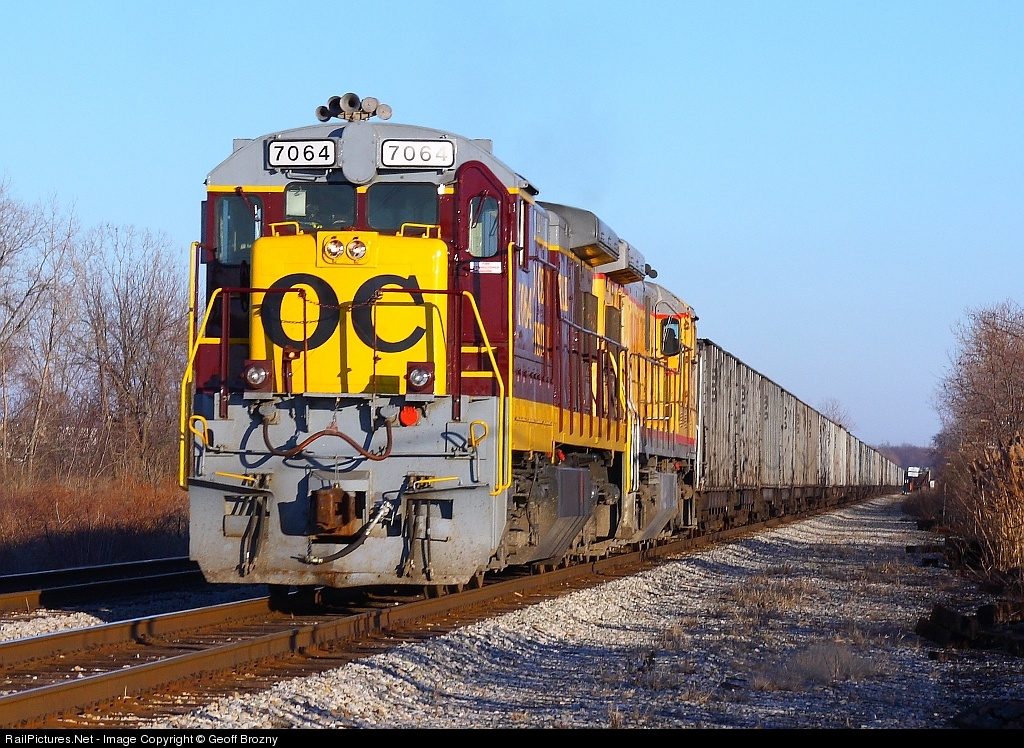 NS 852 heading east on the Panhandle with OHCR 7064 bringing up the rear, doing every bit of 40mph fly through Columbus. 7064 appears to have received a new door since it was painted, as the top of the original one was gray and yellow at the top, not solid maroon.