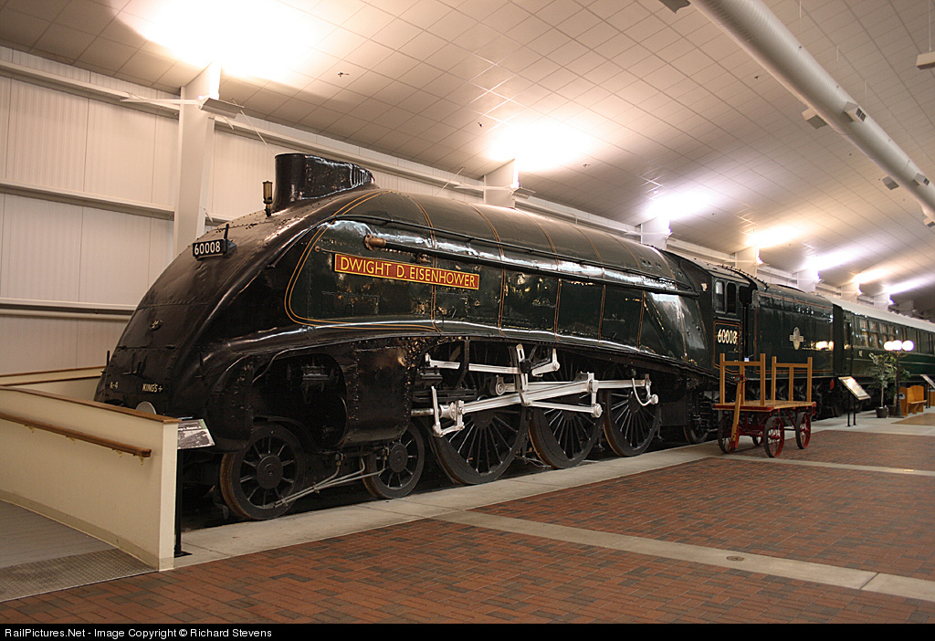 | With the weather taking a turn for the worse during the Steam Loco Safari Tours charter with Soo Line 1003, a breakaway group trekked north to Green Bay to see exiled A4 class Pacific 60008 'Dwight D. Eisenhower' in the National Railroad Museum. Some of us were seeing this nicely presented loco. for the first time, others renewing acquaintanceship after a gap of 45 years. |