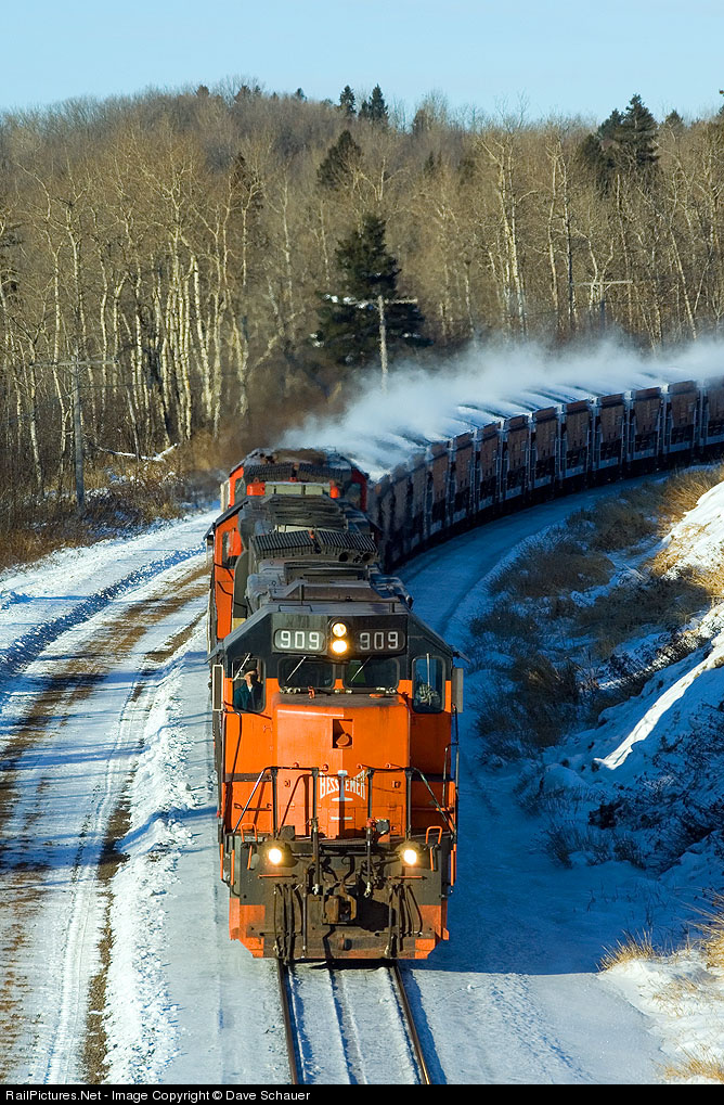 B&LE 909 leads the morning Proctor Roadswitch downgrade towards the dock in Duluth. Temp was -16F this morning with a windchill warning in effect.