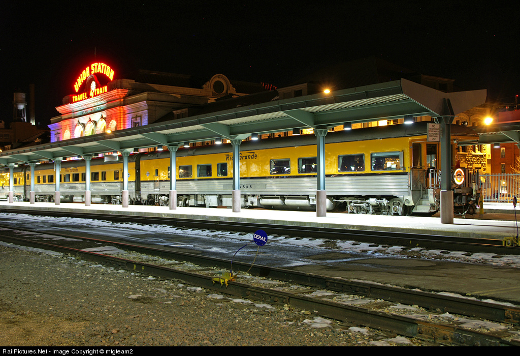 | The Ski Train is parked at Denver Union Station on Christmas night ready for the first run of the season on Saturday 12-27-08. The passenger cars are lettered for the Rio Grande. |