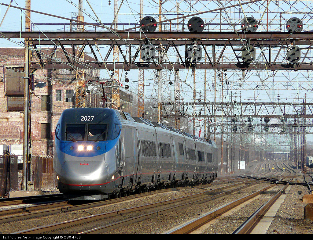RailPictures.Net Photo: AMTK 2027 Amtrak Bombardier/Alstom Acela Express Trainset at Marcus Hook, Pennsylvania by CSX 4758